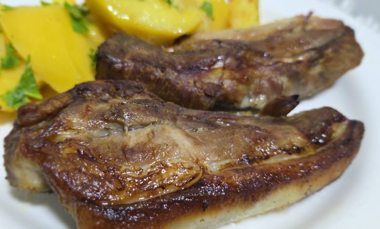 5.Luam capacul tavii si mai lasam inca 30 de minute friptura sa se gateasca si sa se rumeneasca frumos. Cand se rumenesc feliile de fleica, le intoarcem pe partea cealalta astfel incat sa fie rumenite pe ambele parti.
