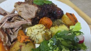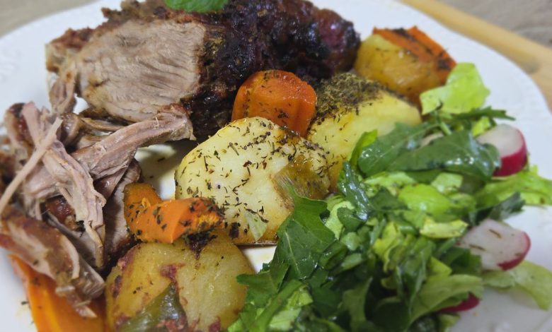 3. Acoperim tava cu hartie de copt si dam friptura la cuptorul preincalzit la 200 de grade. Lasam friptura la cuptor aproximativ 60-65 de minute pana cand devine frageda si suculenta.