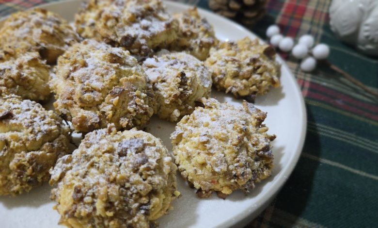 4.Formam fursecuri rotunde de dimensiunea unei nuci. Dam fiecare fursec prin albus si apoi prin nuca si le punem in tava tapetata cu hartie de copt.
